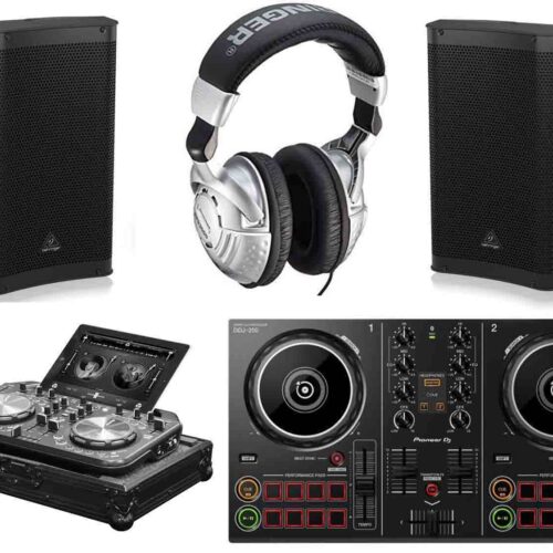 DJ Package for Club with Pioneer DJ Controller, Case, Headphones, Loudspeaker, Cable and LED Lighting System