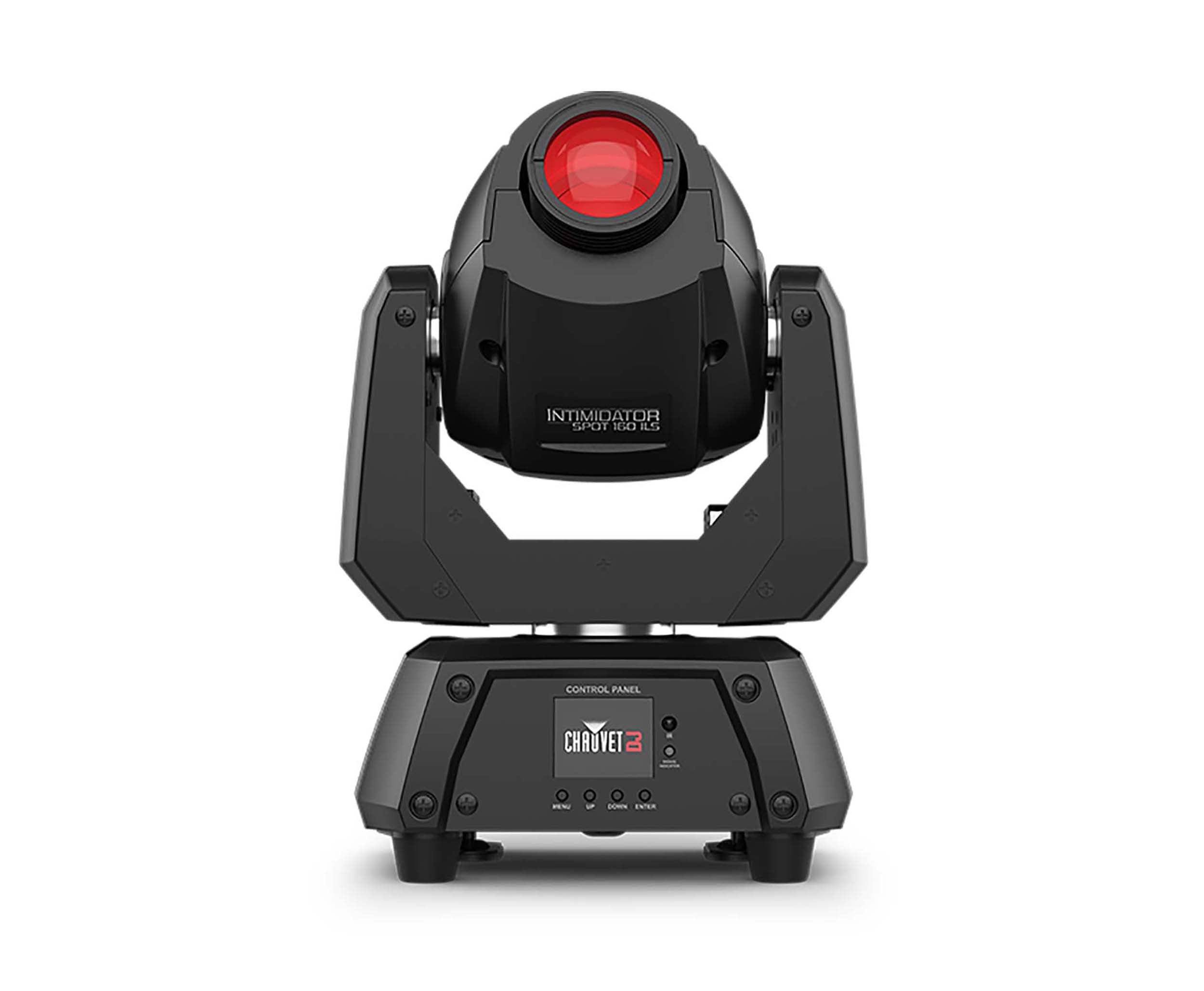 The Chauvet DJ Intimidator Spot 160 ILS LED Moving lights, moving people is what Intimidator moving head lights are all about and Intimidator Spot 160 ILS is sure to get your event guests moving! This compact moving head is ideal for mobile entertainment applications and features compatibility with the cutting-edge Integrated Lighting System (ILS) that makes creating coordinated light shows across different fixture types easy. Intimidator Spot 160 ILS also has D-Fi™ USB compatibility for wireless Master/Slave or DMX control. Built-in Totem Mode means beams always remain on the dance floor and you can set, save, and recall 1 scene manually, directly from the full-color LCD display. Link up to 4 fixtures to create eye-catching, synchronized shows in Automated or Sound mode. A ¼-turn hanging bracket allows for quick removal when needed and convenient, wireless non-DMX control is at hand using the optional IRC-6 remote.
