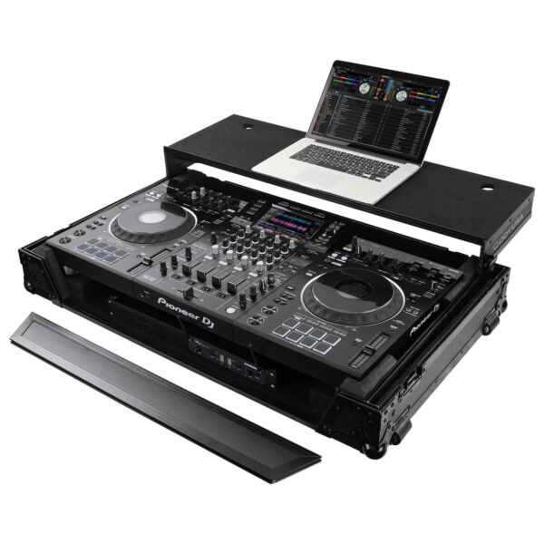 The Odyssey FZGSXDJXZW1BL Black Label case features our patented Glide Style platform perfect for positioning your laptop, tablet, effect processors, and other gear right where you want it over the Pioneer XDJ-RX or XDJ-RX2 controller. The glide platform has a special tension latch rail system that allows you to add our optional Producer Series GSABL angled add-on panels for extra elevation and convenient performance positioning of the gear.